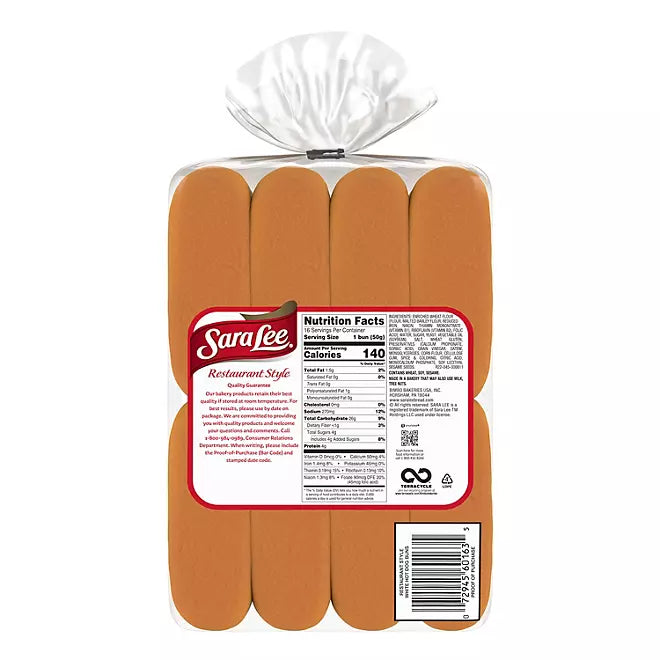Sara Lee Restaurant Style White Hot Dog Buns 24 oz., 16 ct.